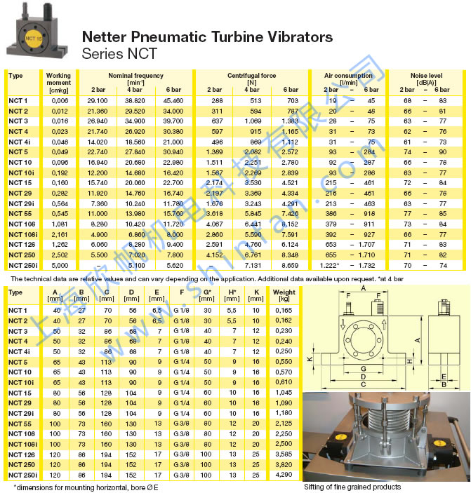 氣動(dòng)渦輪振動(dòng)器NCT1,NCT2,NCT3,NCT4,NCT5,NCT10,NCT15,NCT29,NCT55,NCT108,NCT126,NCT250